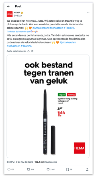 A patinadora de velocidade Jutta Leerdam, da Holanda, pode ver seu contrato com a Nike se valorizar em cerca de US$ 1 milhão (R$ 5 milhões) depois do gesto feito na conquista do ouro nos 1.000 metros dos Jogos Olímpicos de Inverno, na 4ª feira (18.fev.2026). Depois de vencer a prova com recorde olímpico, Leerdam abriu […]