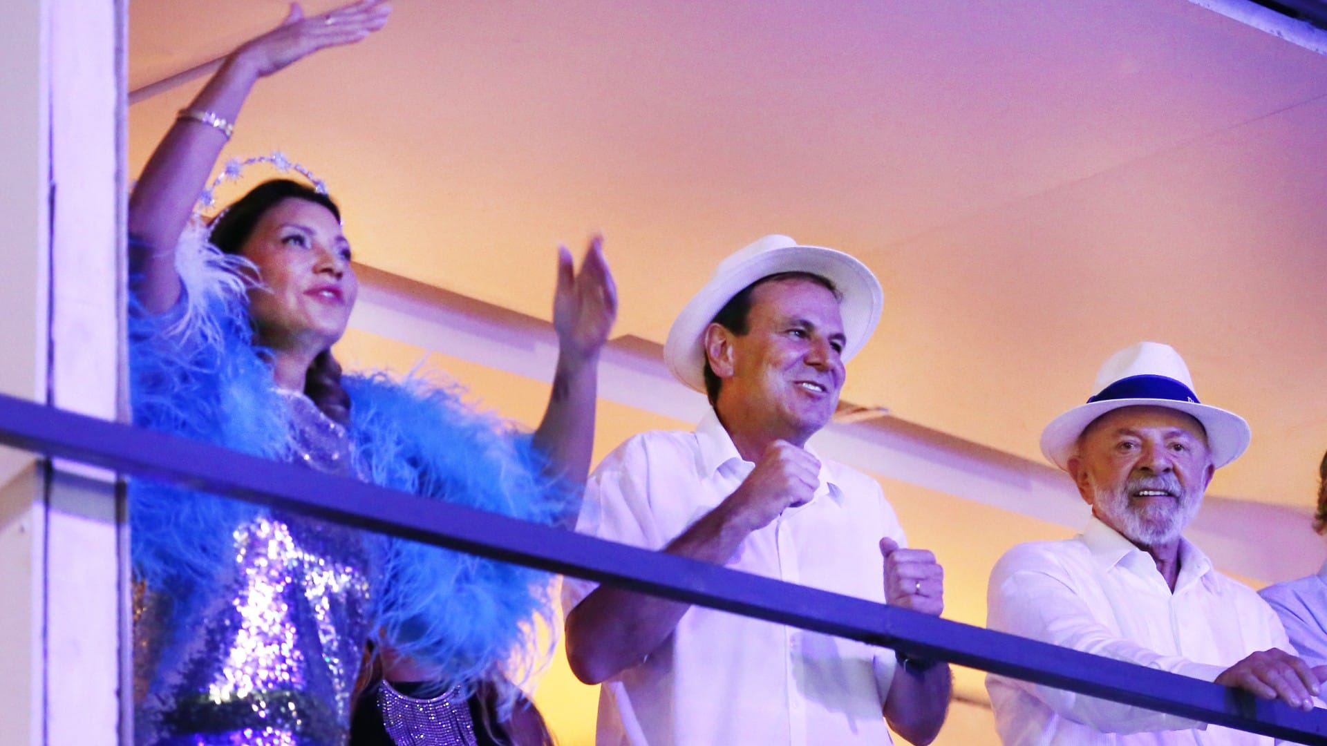 Lula acompanhou do camarote da Prefeitura do Rio, ao lado de Janja, ministros e aliados, como o prefeito Eduardo Paes (PSD). A primeira-dama desistiu de desfilar.