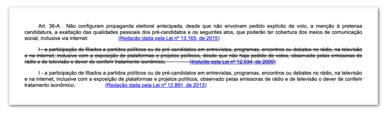 Lista, entre outros itens, entrevistas, manifestação de opinião e a participação em debates e eventos. A condição é de que a pessoa não peça votos nessas situações.