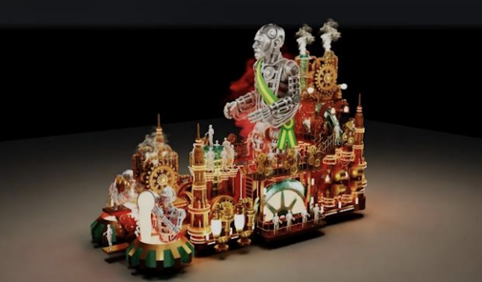 Com estética industrial, o 3º carro simboliza a fase de Lula como torneiro mecânico e líder sindical no ABC paulista. Engrenagens, estruturas metálicas e elementos que remetem ao ambiente fabril dominam a composição. A alegoria sugere o “forjamento” político do homenageado, associando o trabalho nas fábricas ao processo que o levou à fundação do PT e à eleição presidencial. Vídeos e imagens históricas são incorporados à cenografia para representar a passagem do tempo.